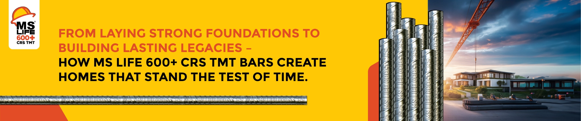 Turn your dream home into reality with the unmatched strength of MS Life 600+ CRS TMT Bars